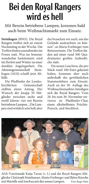 2024 – Der Weihnachtsmarkt war wieder ein toller Erfolg; auch das Wetter spielte mit, an allen 3 Tagen knackig kalt u. trocken-da schmeckte der Glühwein u. die Besucher genossen das weihnachtliche Flair. An 72 Ständen konnten wieder in der Zeit von 11.30 Uhr bis 23.00 Uhr die unterschiedlichsten Dinge erstanden u. genossen werden. Auch international war der Markt interressant. Aus unserer Partnerstadt Woerden war die Brandweer mit Käse u. Stroopwaffeln dabei. Es gab sogar königlichen Besuch aus Ede-die Heidekönigin Merel und die Prinzessin Zoe waren zu Gast. Und auch die Letten aus Ruijenne waren wieder mit ihren kunstgewerblichen Artikeln u. den tollen Stricksachen dabei. Die Italiener waren leider nicht gekommen. Das Bühnenprogramm wurde gut angenommen u. auch ein 2. Karussel auf dem Marktplatz zu platzieren, war eine gute Entscheidung. Mit den Landfrauen im Museumscafe war auch wieder für einen gemütlichen warmen Treffpunkt gesorgt. Das große Abschlußkonzet in der Kirche von den weltlichen Chören Belcanto und feelHarmonie wurde erstmalig vom Steinhagener Gymnasium unterstützt, die VoiceGuys u. die VoiceVibes waren eine Bereicherung.